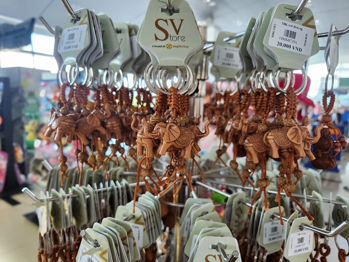 Quà lưu niệm móc khóa hình voi Tây Nguyên tại sân bay Buôn Ma Thuột.