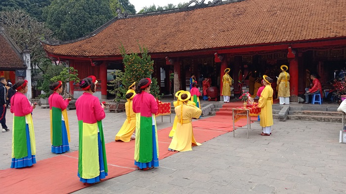 Hoạt động văn hóa lễ hội tại Văn Miếu - Quốc Tử Giám trong dịp Tết nguyên đán thu hút đông đảo nhân dân, du khách (Ảnh: TITC)