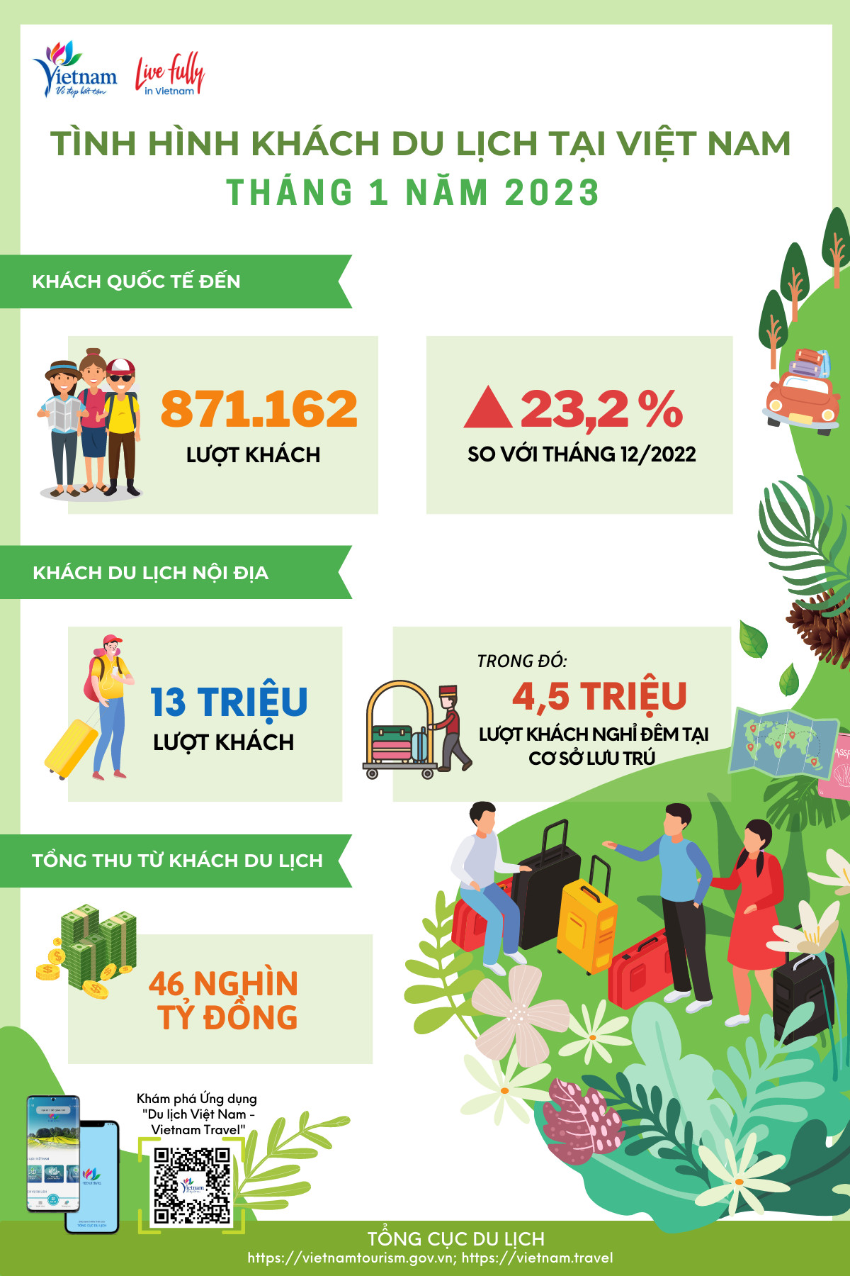 [Infographic] Tình hình khách du lịch tháng 1 năm 2023