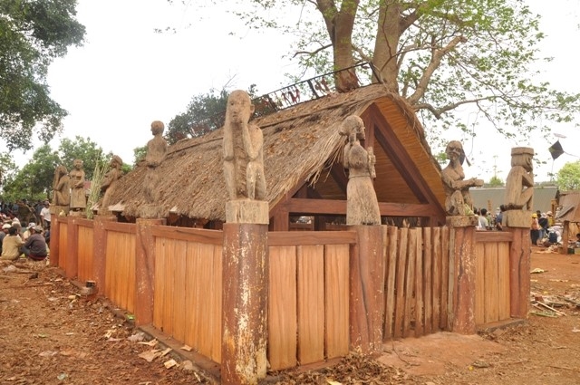 Tượng gỗ trên nhà mồ làng Kép, xã Ia Mơnông, huyện Chư Păh, tỉnh Gia Lai (Ảnh: Xuân Toản)