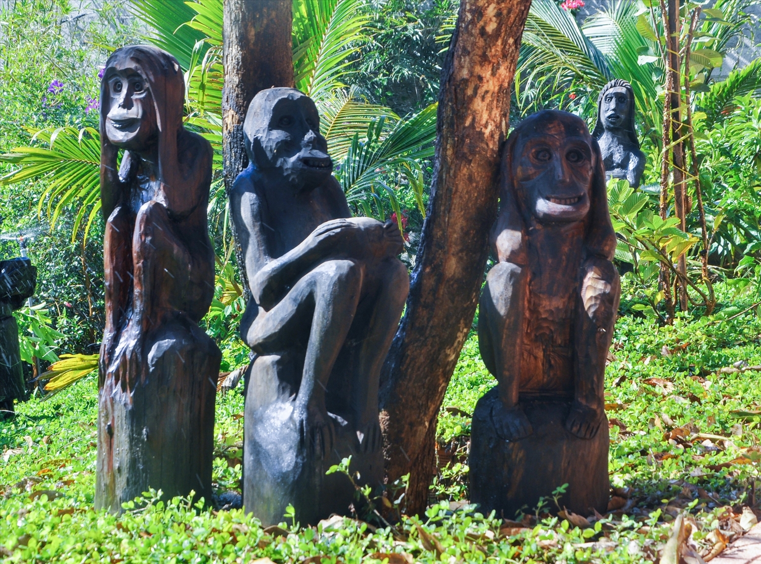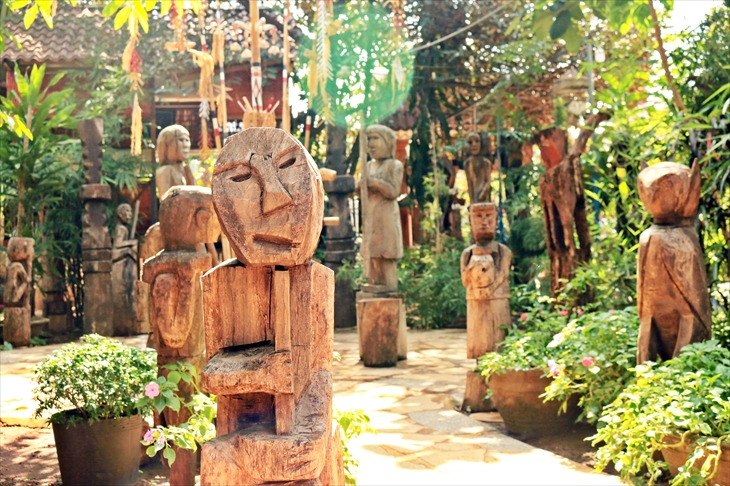 Tượng gỗ dân gian Tây Nguyên được dùng trang trí, giới thiệu với du khách tại Khu du lịch Ko Tam. Ảnh: Hữu Hùng