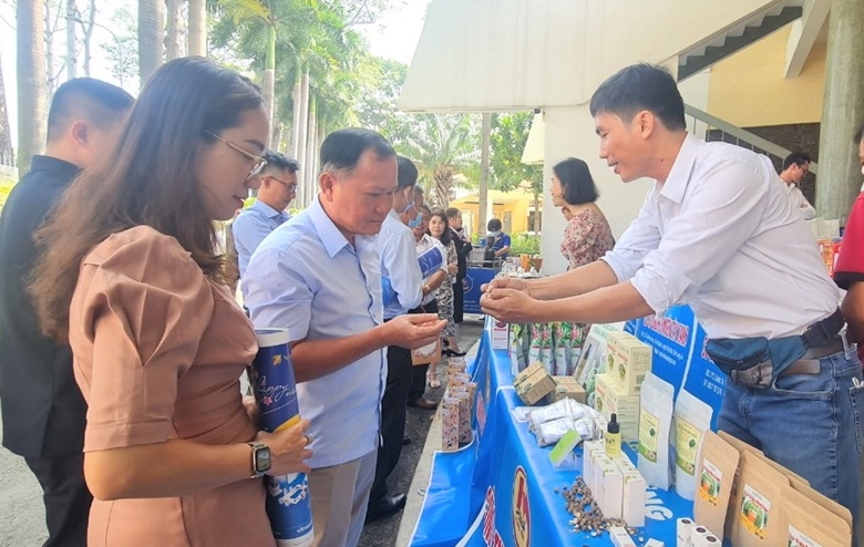 Hoạt động trưng bày và giới thiệu sản phẩm vùng miền, sản xuất nông sản: ”Kết nối giao thương” tại buổi gặp mặt.