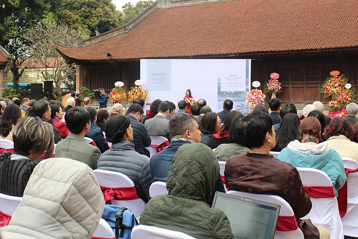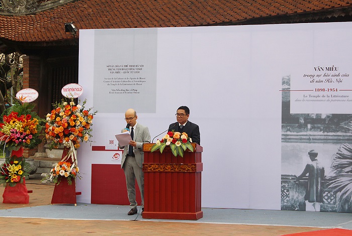 Phát biểu tại lễ khai mạc, ngài Nicolas Fiévé - Giám đốc Viện Viễn đông bác cổ Pháp nhấn mạnh, Triển lãm cho thấy sự phát triển về mặt kiến trúc của Văn Miếu, cuộc sống bên trong; cũng như công tác tu bổ, tôn tạo di sản trong nhiều năm, với sự cống hiến miệt mài và tận tụy của những người tham gia công tác này. Với các tư liệu quý, Triển lãm cho phép chúng ta trở lại quá khứ gần như vẫn còn hiện hữu nơi đây.
