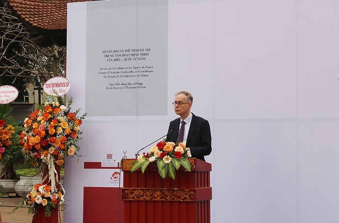 Ngài Nicolas Fiévé - Giám đốc Viện Viễn đông bác cổ Pháp phát biểu tại buổi lễ (Ảnh: TITC)
