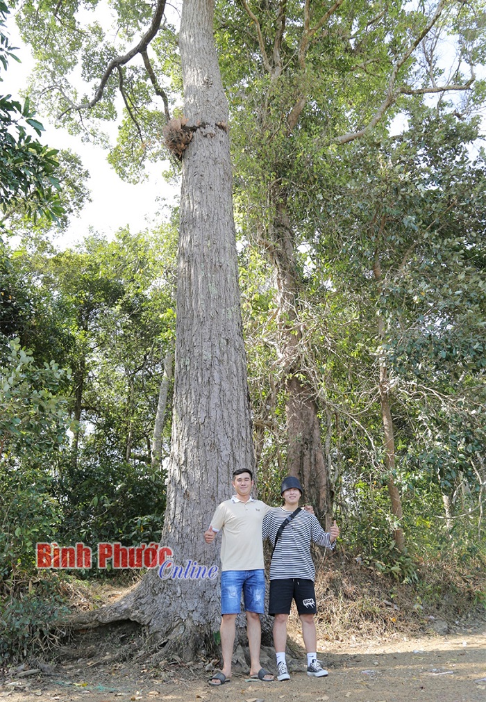 Du khách Nguyễn Thanh Sang (bên trái) đến từ tỉnh Bình Dương thích thú với phong cảnh và thiên nhiên ở trảng cỏ Bù Lạch
