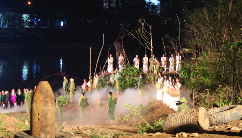Sân khấu thực cảnh “Trở về bến phà xưa” được dàn dựng công phu ngay bên bến phà lịch sử, tái hiện cảnh làm đường, cảnh xe ô-tô lao qua lửa đạn cấp cứu thương binh, hay cảnh tướng Đồng Sỹ Nguyên chỉ huy ở chiến trường…