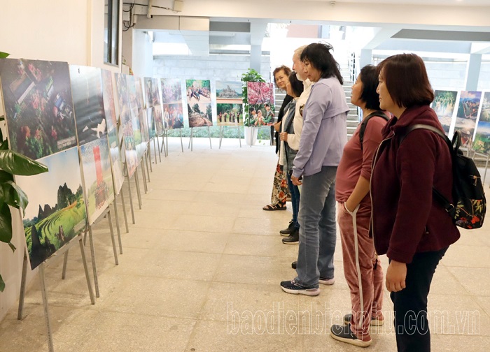 Du khách tham quan triển lãm trưng bày ảnh nghệ thuật du lịch Điện Biên. Ảnh: C.T.V