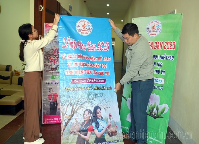 Không phải đến thời điểm này, công tác tuyên truyền, quảng bá cho Lễ hội, Ngày hội mới được triển khai. Từ nhiều tháng trước toàn bộ hệ thống ma két tuyên truyền đã được Ban Tuyên giáo Tỉnh ủy cho ý kiến thẩm định và được tích cực triển khai tuyên truyền cổ động. Sở VHTTDL - cơ quan thường trực đã thực hiện căng treo 50 băng rôn, cờ phướn về lễ hội, 7 cụm cổ động và cụm pano di động quảng bá Cuộc thi người đẹp Hoa Ban và Lễ hội Hoa Ban năm 2023 tại các tuyến đường trung tâm thành phố Điện Biên Phủ; 2 cụm Pa nô tấm lớn tại xã Thanh Nưa huyện Điện Biên và xã Nà Tấu thành phố Điện Biên Phủ. Các huyện, thị cũng tích cực vào cuộc, như: Huyện Tủa Chùa căng treo 12 băng rôn, 30 lượt cờ dây; TX. Mường Lay căng treo 13 băng rôn, 30 áp phích… Các cơ quan thông tấn, báo chí tỉnh, cơ quan có ấn phẩm báo chí, các cơ quan báo chí Trung ương trên địa bàn tỉnh, trung tâm văn hóa, truyền thanh - truyền hình các huyện, thị xã, thành phố đã chủ động đăng tin, bàn, đặt baner để tuyên truyền quảng bá về Lễ hội. Trọng tâm là phản ảnh công tác chuẩn bị cho Lễ hội về các hoạt động, sự kiện diễn ra trong khuôn khổ Lễ hội... Đài Phát thanh và Truyền hình tỉnh sản xuất 25 tin, bài, phóng sự liên quan đến công tác chuẩn bị cho Lễ hội. Phần lớn các tin bài đều được biên tập, biên dịch ra tiếng Mông, tiếng Thái để phát sóng; đăng tải trên trang thông tin điện tử dienbientv.vn tiếp cận 290 nghìn lượt truy cập; Sở VHTTDL đã xây dựng 3 video clip và tuyên truyền trên màn hình LED 20 buổi; đăng tải hơn 10 tin, bài, 3 video trên cổng/trang thông tin điện tử của ngành và trên chuyên trang Lễ hội Hoa Ban. Để thông tin của Lễ hội vươn xa hơn tới các tỉnh bạn, Sở VHTTDL còn tổ chức tuyên truyền về Lễ hội tại Ngày hội VHTTDL các dân tộc vùng Tây Bắc ở Phú Thọ, Lễ hội đua thuyền đuôi Én lần thứ VIII và Giải các Câu lạc bộ dù lượn quốc gia lần thứ III tại TX. Mường Lay; tổ chức xuất bản và phát hành 1.000 tờ rơi tuyên truyền cho Lễ hội tại các quầy thông tin, gửi đến trung tâm thông tin xúc tiến du lịch các tỉnh thành phố, công ty du lịch trên toàn quốc. Ngoài ra, Lễ hội Hoa Ban năm nay còn nhân được sự ủng hộ của sở VHTTDL các tỉnh, thành phố trong cả nước khi tuyên truyền về Lễ hội Hoa Ban trên ấn phẩm, trang thông tin điện tử của mình...
