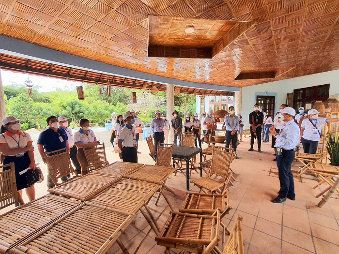 Khách tham quan Làng tre Phú An, TX.Bến Cát. Ảnh: Hồng Thuận