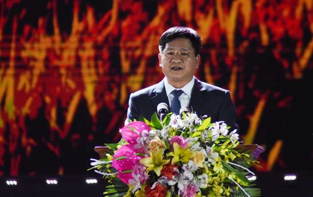 Đồng chí Lê Thành Đô - Phó Bí thư Tỉnh ủy, Chủ tịch UBND tỉnh đọc diễn văn khai mạc Lễ hội, Ngày hội