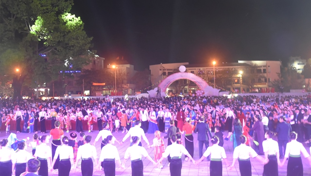 Kết thúc chương trình nghệ thuật, trong khung cảnh pháo hoa muôn sắc màu, các đại biểu cùng đông đảo người dân, du khách cùng tay trong tay đắm say vòng xòe thắm tình đoàn kết, hữu nghị.