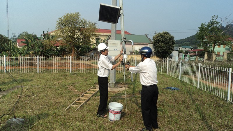 Cán bộ Đài Khí tượng thủy văn khu vực Trung Trung Bộ quan trắc và kiểm tra lắp đặt thiết bị quan trắc. (Ảnh: VNMHA).