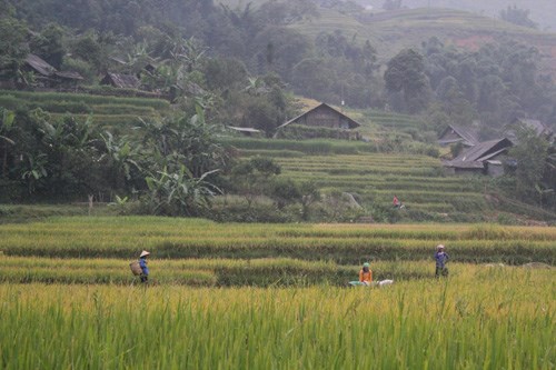 Bản Tả Van Giáy nhìn từ cánh đồng lúa vàng. Ảnh: Yên Định