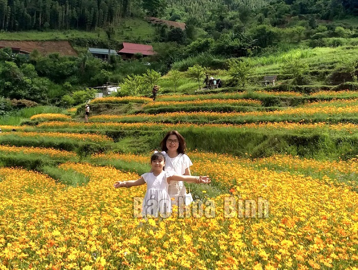 Ông Bùi Văn Hiểu, Trưởng xóm Mừng cho biết: Những năm trước, khách du lịch đến xóm Mừng không nhiều. Khi đồi hoa bắt đầu đón khách từ ngày 22/5, lượng khách đến tham quan, trải nghiệm ở cánh đồng hoa xóm Mừng khá nhiều, nhất là dịp cuối tuần có khi lên tới hàng trăm khách/ngày. Tiền vé tham quan đồi hoa 20.000 đồng/người với khách ở Hòa Bình, 30.000 đồng/người với khách ngoại tỉnh. Qua đó cũng tạo thêm thu nhập cho người dân địa phương. Hiện, Ban quản lý xóm và các hộ dân đang tiến hành quy hoạch, cải tạo trồng thêm các loại hoa, tu sửa đường đi để phục vụ du khách.