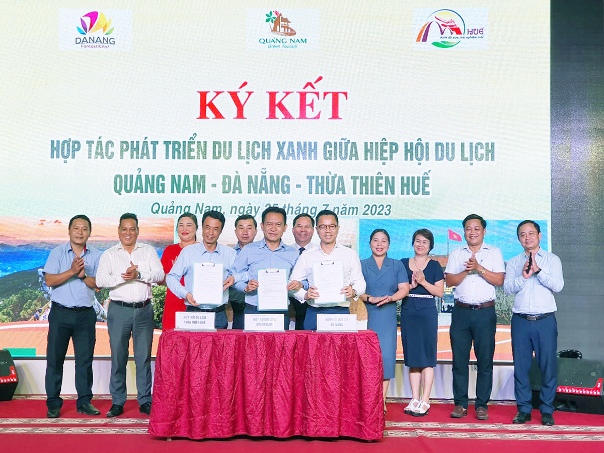 Trong khuôn khổ Hội thảo cũng đã diễn ra chương trình ký kết hợp tác thúc đẩy phát triển chuỗi sản phẩm du lịch xanh giữa hiệp hội du lịch 3 địa phương Quảng Nam - Đà Nẵng - Thừa Thiên Huế.