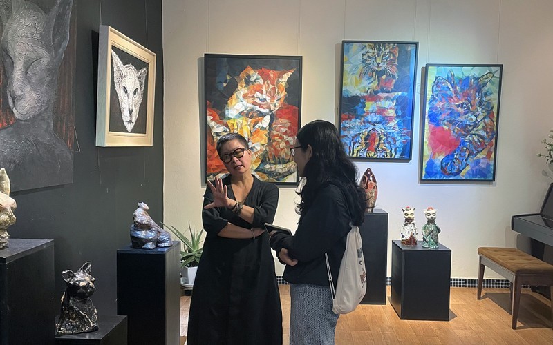Họa sĩ Trương Thúy Anh tại triển lãm "Miêu".