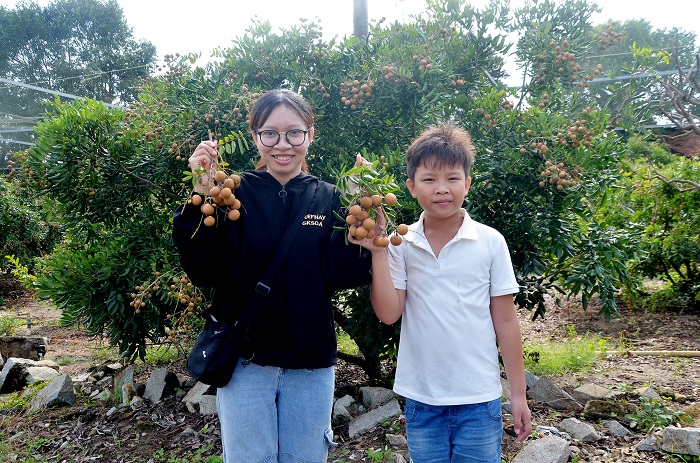 Theo bà Trương Thị Bảy, chủ vườn nhãn Hòa Thuận, vườn nhãn rộng hơn 2ha, trồng các loại nhãn bao công, nhãn tiêu và nhãn bắp cải. Sản lượng bình quân hơn 20 tấn/vụ. Từ năm 2022, vườn nhãn của gia đình bà được huyện chọn là điểm du lịch cộng đồng nên mở cửa đón khách đến tham quan, trải nghiệm. Từ khi mô hình đi vào hoạt động, lượng khách thăm quan tại vườn cũng khá nhiều.