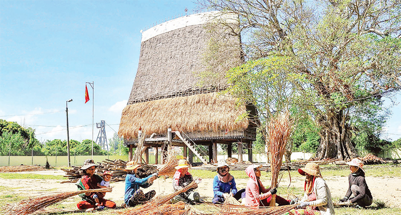 Nhà rông vùng đồng bào dân tộc thiểu số tại Kon Tum thường xuyên được tu bổ, sửa chữa. (Ảnh Quang Vinh)