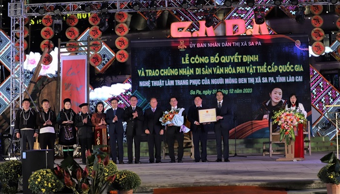Trao chứng nhận di sản văn hóa phi vật thể quốc gia đối với Nghệ thuật làm trang phục dân tộc Mông đen cho thị xã Sa Pa
