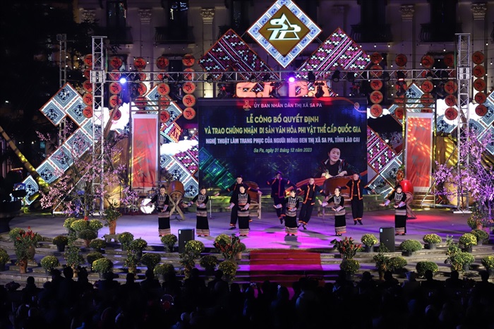Tối ngày 31/12, thị xã Sa Pa, tỉnh Lào Cai đã tổ chức Lễ công bố và trao chứng nhận di sản văn hóa phi vật thể quốc gia đối với “Nghệ thuật làm trang phục của người Mông đen thị xã Sa Pa, tỉnh Lào Cai”. Bộ trưởng, Chủ nhiệm Uỷ ban Dân tộc Hầu A Lềnh tới dự và chia vui với Cấp ủy, chính quyền và Nhân dân các dân tộc của thị xã.