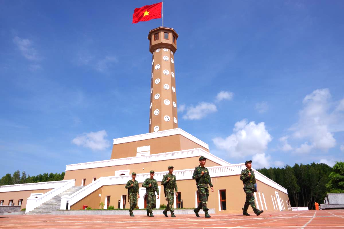 Tổ công tác của Đồn Biên phòng Đất Mũi tuần tra bảo vệ địa bàn và khu vực cột cờ. Ảnh: Lê Khoa