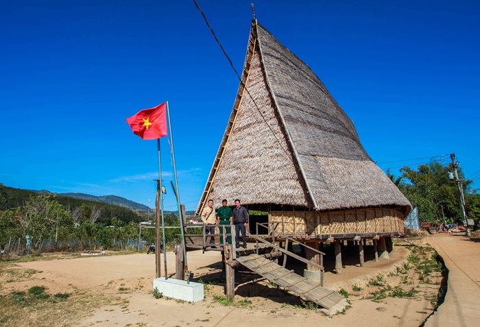 Nhà rông thôn Kon Vi Vàng được làm từ 100% nguyên liệu tự nhiên. Ảnh: HT