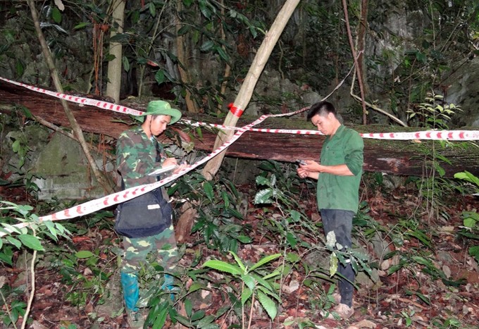Cán bộ lâm nghiệp điều tra sự phân bố của các loài trong khu vực rừng Pù Luông. Ảnh: TTXVN