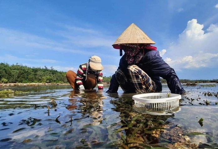 Người dân khai thác rong mơ tại khu vực ven biển Tam Hải.