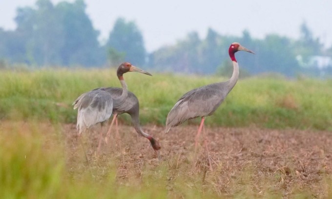 Trước đó ngày 8/3, 4 cá thể sếu đầu đỏ cũng bay về Vườn quốc gia Tràm Chim (huyện Tam Nông, Đồng Tháp), cách khu bảo tồn Phú Mỹ chừng 120 km, sau hai năm vắng bóng.