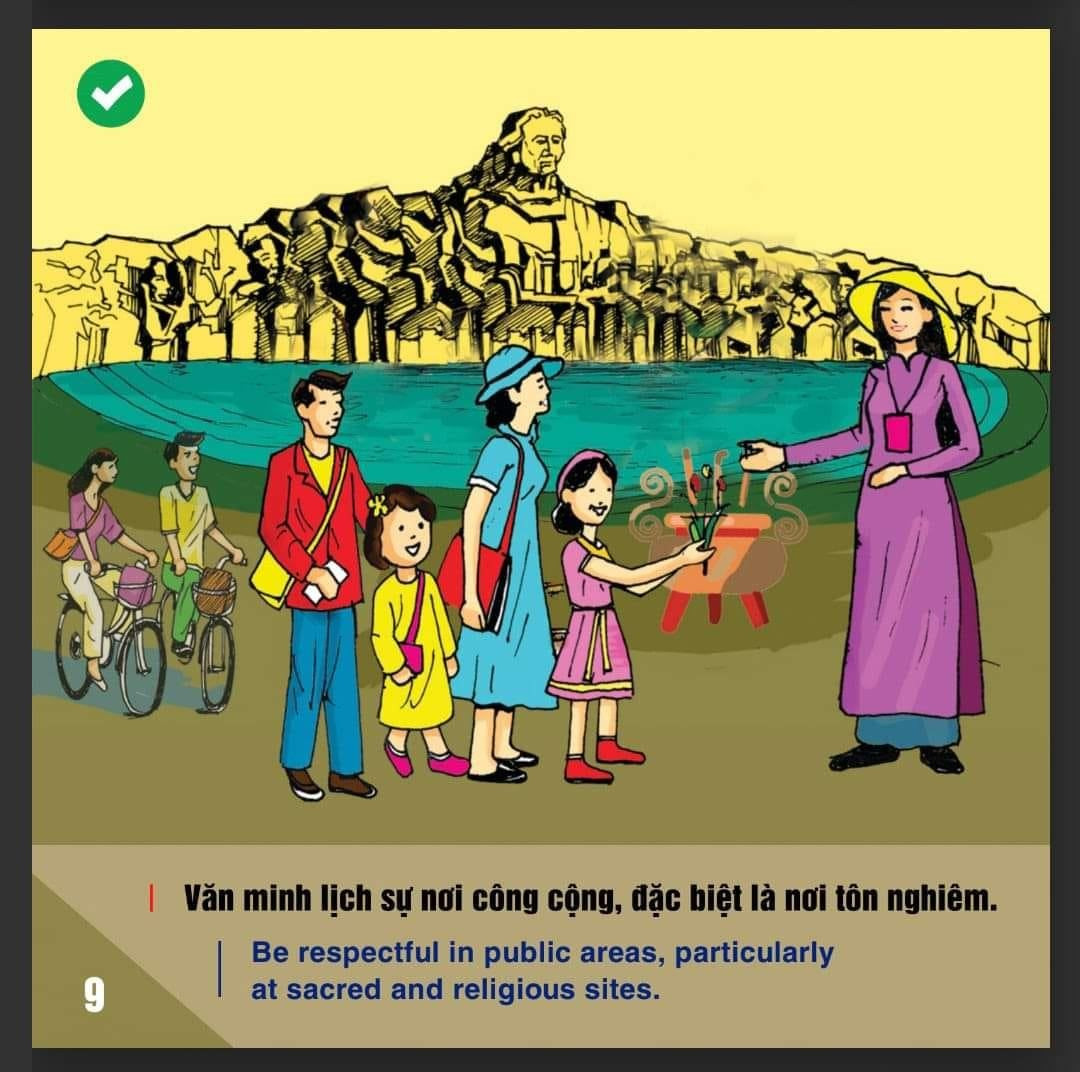 Bộ quy tắc ứng xử văn minh du lịch Quảng Nam gồm 23 điều, là những quy định ngắn gọn, súc tích và dễ hiểu, dễ thực hiện kèm theo hình ảnh minh họa sinh động để bất kể khách du lịch, cộng đồng địa phương hay nhân viên du lịch đều hiểu nhanh và thực hiện đúng.