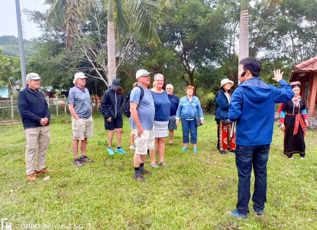 Du khách tàu biển quốc tế tới tham quan Khu bảo tồn văn hóa người Dao Thanh Y ở Bằng Cả (TP. Hạ Long).