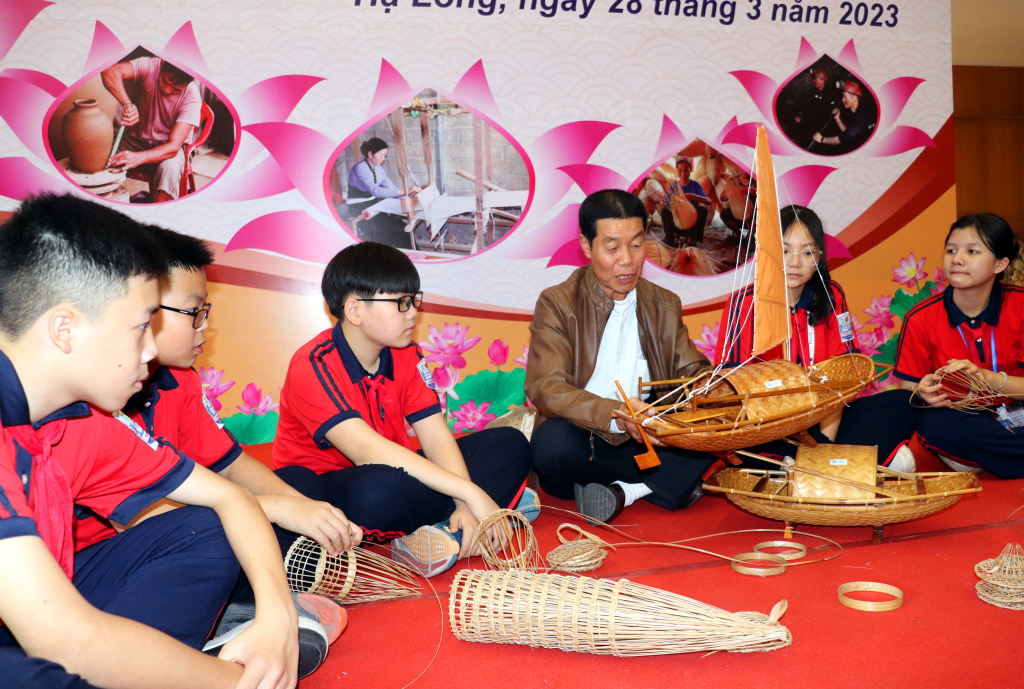 Nghệ nhân Nguyễn Anh Sáu giới thiệu về nghề truyền thống cho thế hệ trẻ ở Bảo tàng Quảng Ninh, tháng 3/2023.