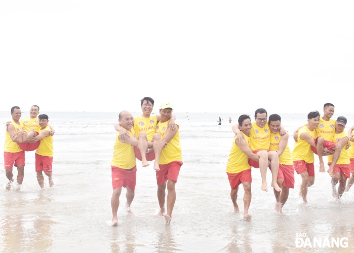 Dọc các bãi tắm Mỹ Khê, Mân Thái, Mỹ An, Thanh Khê, Liên Chiểu… dễ dàng bắt gặp các nhân viên của đội cứu nạn trong đồng phục hai màu trắng vàng thường xuyên đi lại trên bãi biển, mắt không rời khỏi khu vực người dân, du khách đang tắm biển. Ngoài lực lượng cứu nạn thường xuyên túc trực trên bãi cát, Ban Quản lý bán đảo Sơn Trà và các bãi biển du lịch Đà Nẵng (gọi tắt là Ban Quản lý) còn phân công người chèo thúng, trực ở khu vực ngoài xa để tiện cho việc quan sát cũng như nhắc nhở người tắm biển không ra ngoài khu vực phao giới hạn. Chị Lê Nguyễn Hoàng Thư (Thành phố Hồ Chí Minh) chia sẻ, lần nào đi du lịch Đà Nẵng gia đình chị cũng dành nhiều thời gian tắm biển và vui chơi tại các bãi biển. Thấy đội ngũ nhân viên cứu hộ, cứu nạn túc trực thường xuyên tại bãi biển hướng dẫn, nhắc nhở du khách tắm đúng nơi quy định, không tắm ở các khu vực có dòng nước nguy hiểm thì cũng thấy yên tâm hơn rất nhiều.