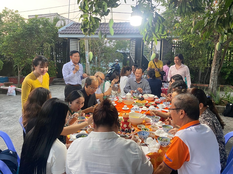 Đoàn khách tham quan thưởng thức mỳ trường dạ