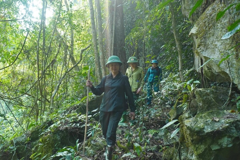Đã không biết bao lần xuyên rừng để tuần rừng, nên dù thân hình nhỏ nhắn, nhưng nữ kiểm lâm viên Mùng Thị Hoài vẫn thoăn thoắt vượt đá dẫn chúng tôi đi. Mấy gã đàn ông thở không ra hơi sau vài cây số đường rừng, đã chùn chân, mỏi gối, nhưng vì “sợ” cô kiểm lâm viên chê nên gắng mà theo.