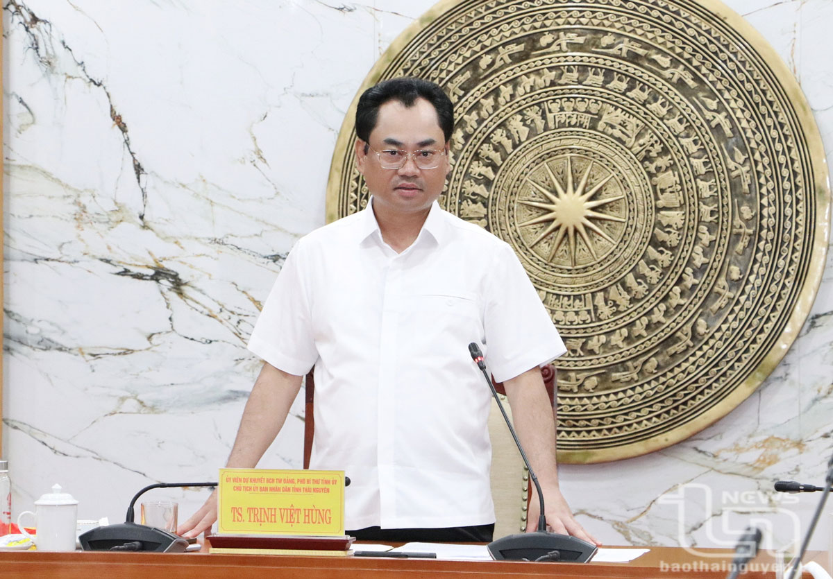 Đồng chí Chủ tịch UBND tỉnh Thái Nguyên Trịnh Việt Hùng chủ trì Hội nghị. Ảnh: Thành Chung