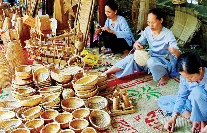 Đến với ngày hội, du khách có thể tự tay làm các sản phẩm từ làng nghề truyền thống mây tre đan. Ảnh: DLQĐ