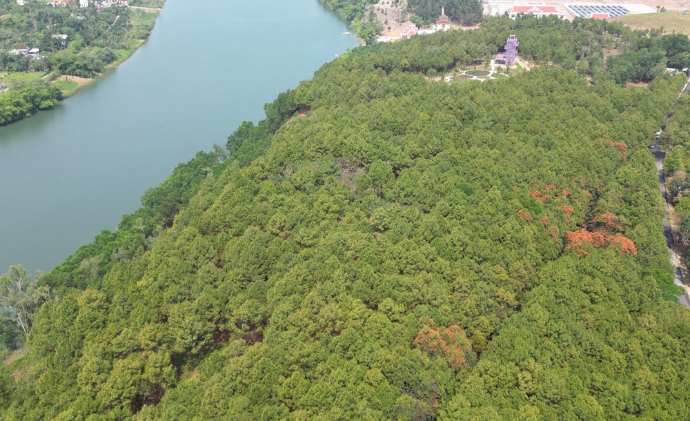 Danh thắng đồi Vọng Cảnh nhìn từ trên cao với hệ thống cây xanh, là “lá phổi xanh” của Huế