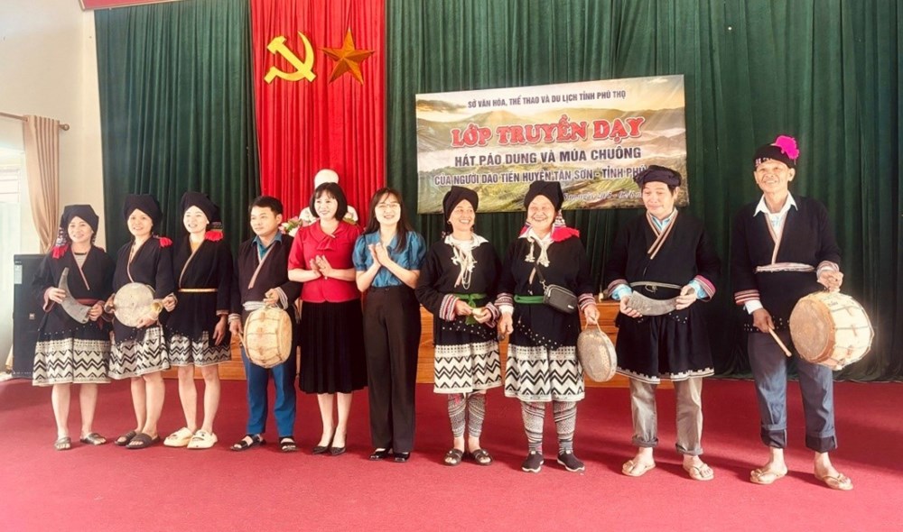 Nhằm triển khai thực hiện có hiệu quả Dự án 6 về “Bảo tồn, phát huy giá trị văn hóa truyền thống tốt đẹp của các dân tộc thiểu số gắn với phát triển du lịch”, từ ngày 20/5 đến 3/6, Sở VHTTDL Phú Thọ tổ chức lớp truyền dạy hát Páo Dung và múa Chuông của người Dao Tiền đang sinh sống tại 2 xã Xuân Sơn và Đồng Sơn, huyện Tân Sơn.
