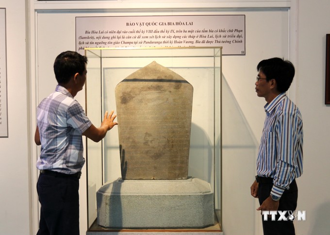 Bảo vật quốc gia Bia Phước Thiện được trưng bày tại Bảo tàng tỉnh Ninh Thuận. Ảnh: Nguyễn Thành