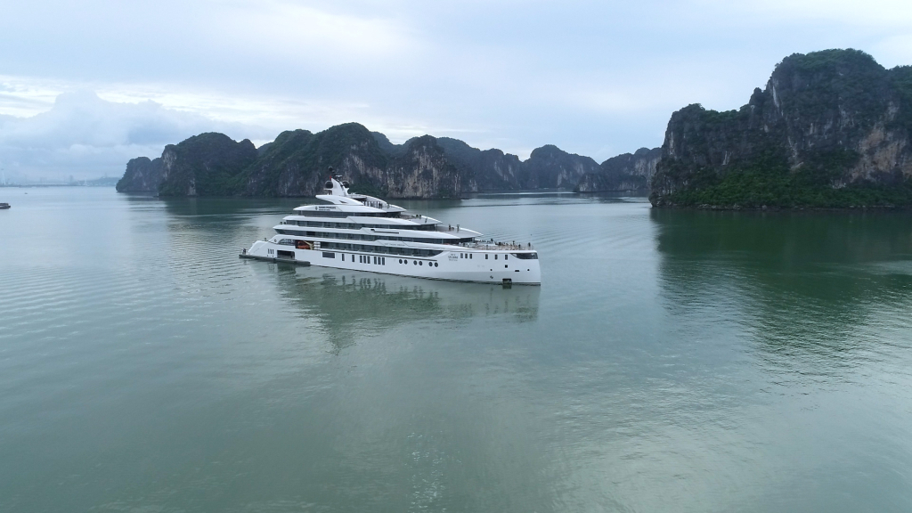 Du thuyền 5 sao Grand Pioneers 2 là du thuyền đầu tiên thực hiện "Hành trình di sản" đi qua 2 vịnh Hạ Long và Bái Tử Long, trong đó có những điểm đến thuộc Vườn quốc gia Bái Tử Long. Ảnh: Nguyễn Thơm