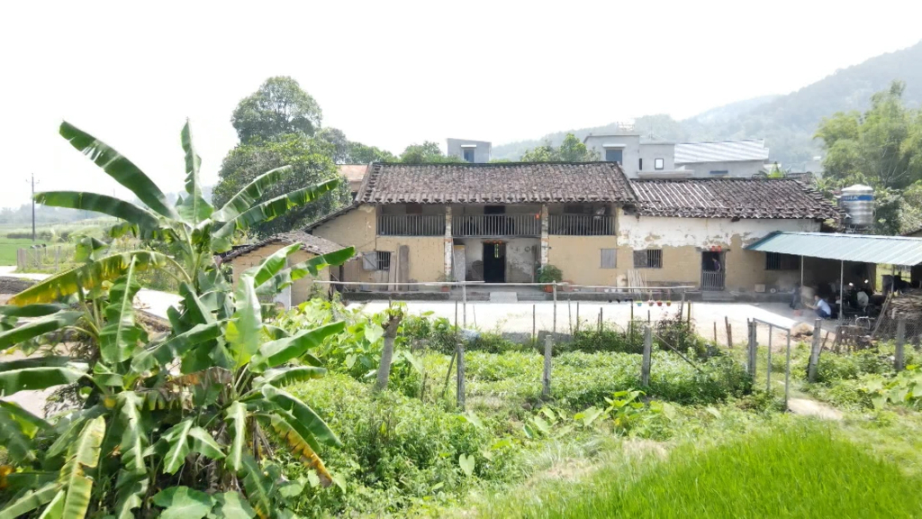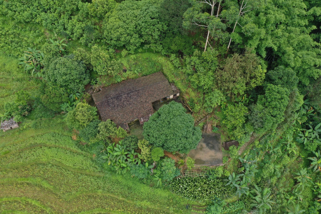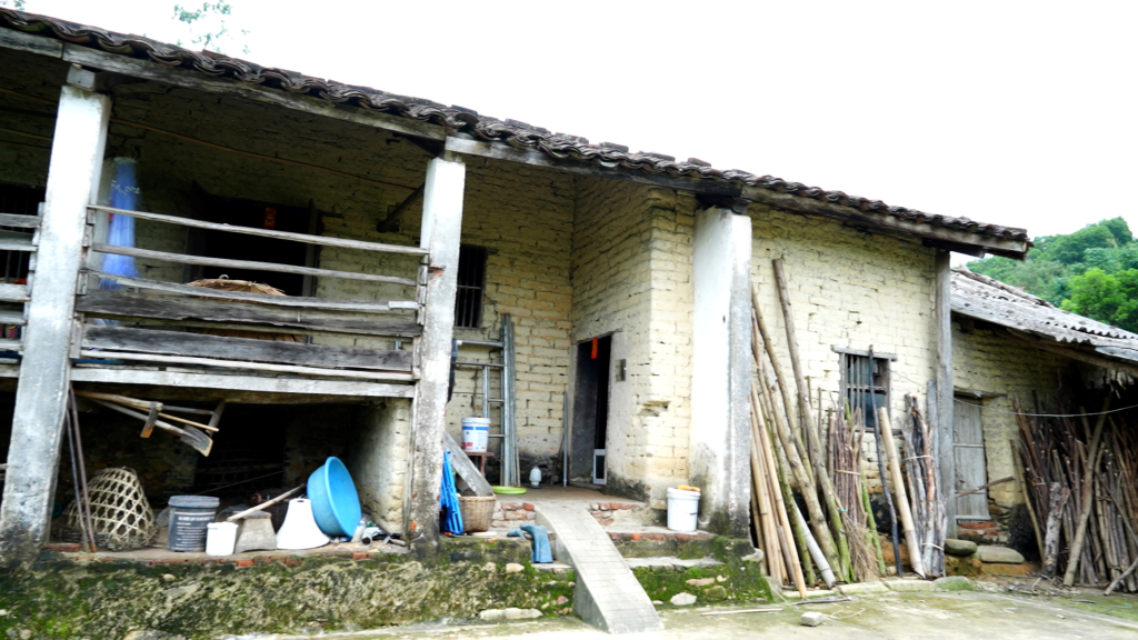Toàn cảnh ngôi nhà gạch đất cổ của gia đình bà Nình Móc Màu ở thôn Khe Lục, xã Đại Dực, huyện Tiên Yên.
