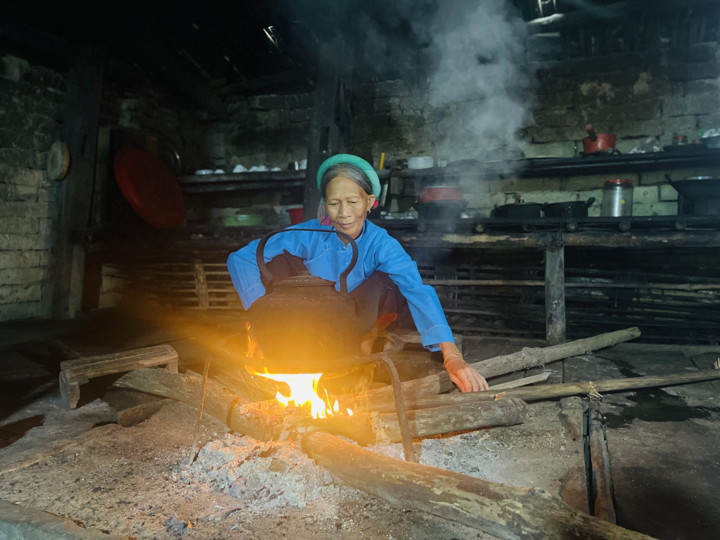 Trong bộ trang phục truyền thống của đồng bào Sán Chỉ, bà Nình Móc Màu - chủ nhân của ngôi nhà cổ niềm nở tiếp đón chúng tôi. Bà cho biết, căn nhà này được gia đình làm từ năm 1969 và phải mất 2 tháng chuẩn bị vật liệu, 1 tháng xây dựng.