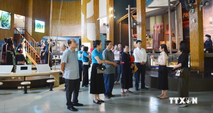 Các đại biểu tham quan Bảo tàng Văn hóa các dân tộc Việt Nam tại tỉnh Thái Nguyên. Ảnh: Thu Hằng - TTXVN