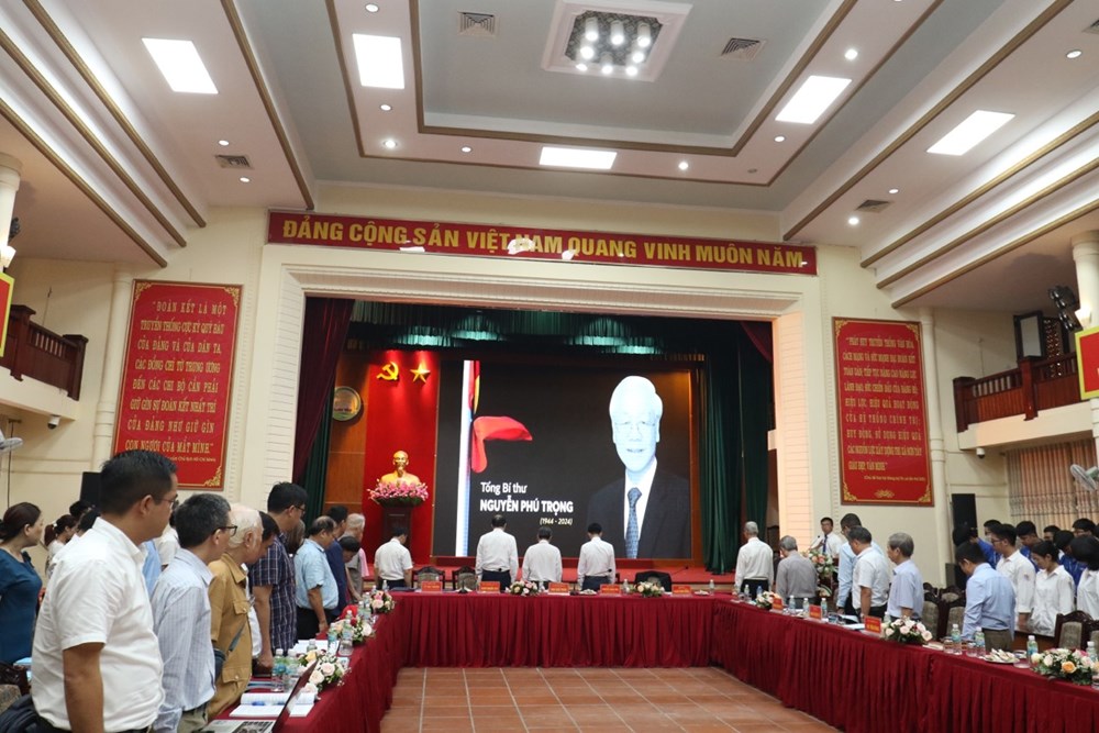 Trước khi hội thảo diễn ra, các đại biểu dự hội thảo đã dành một phút mặc niệm Tổng Bí thư Nguyễn Phú Trọng
