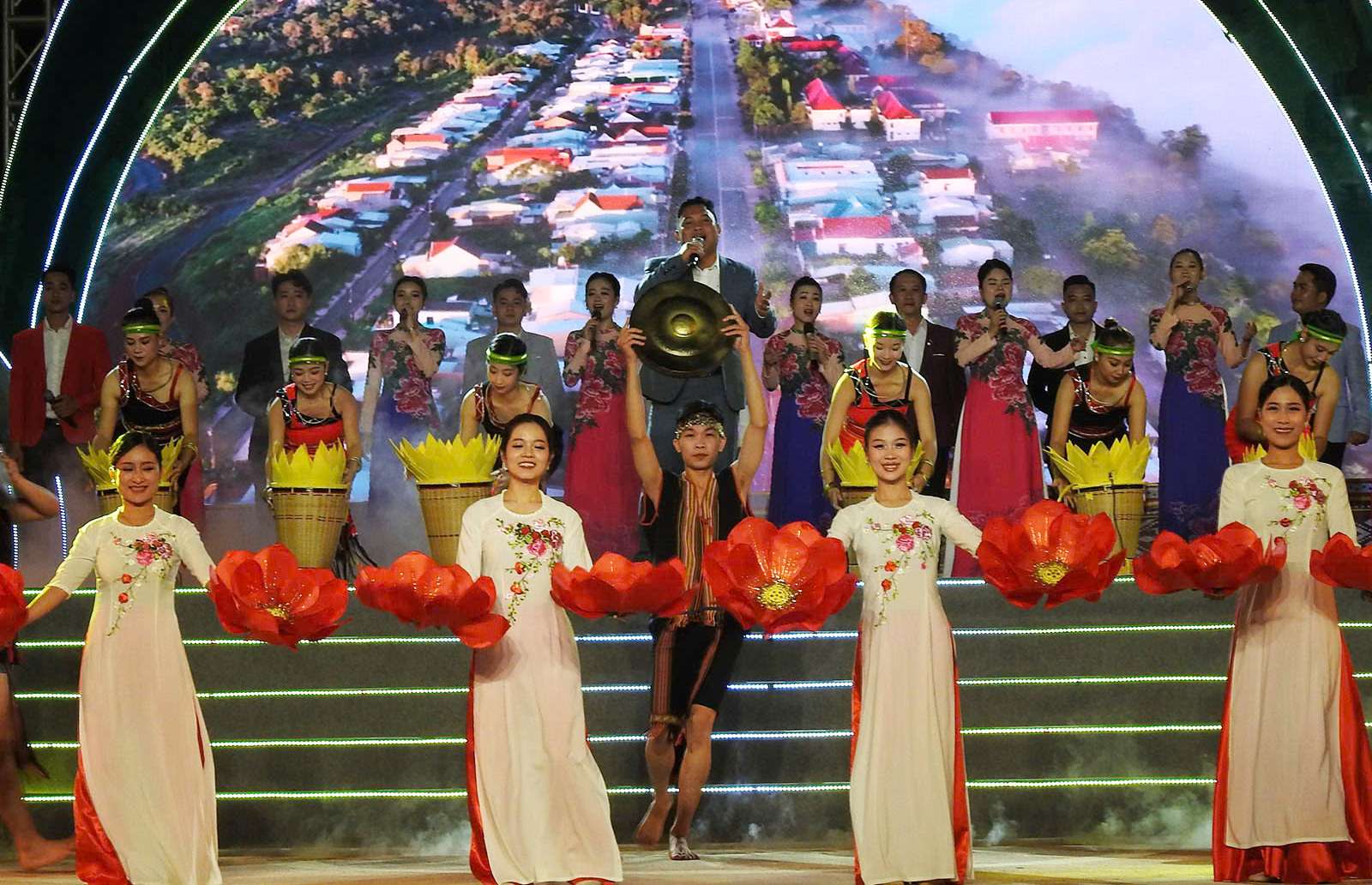 Chương trình nghệ thuật được tổ chức tại thị trấn Măng Đen chào mừng kỷ niệm 50 năm giải phóng huyện Kon Plông. Ảnh: K.Đ