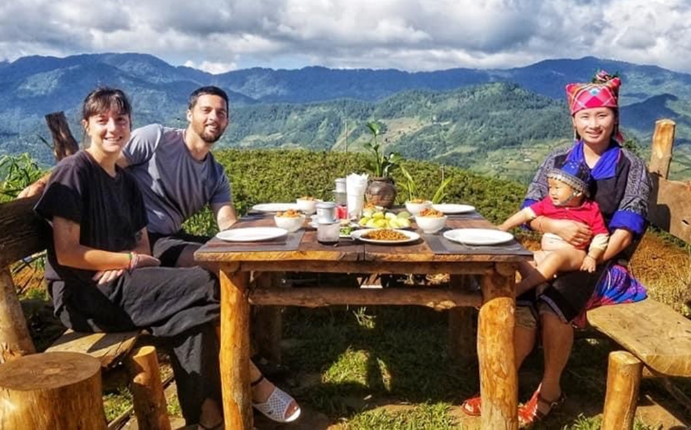 Du khách nước ngoài thích thú trải nghiệm cảnh quan, văn hóa, ẩm thực với người dân bản địa huyện Mù Cang Chải.
