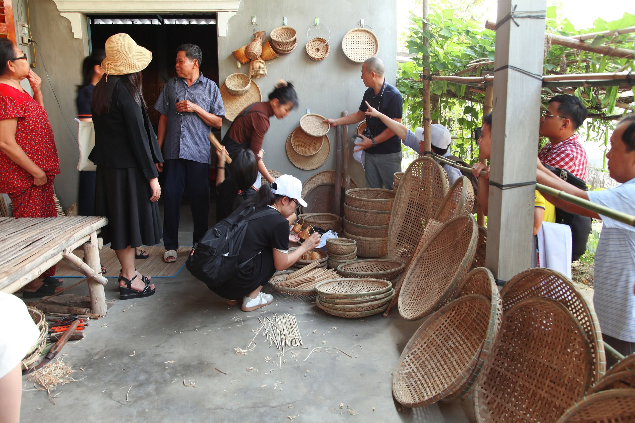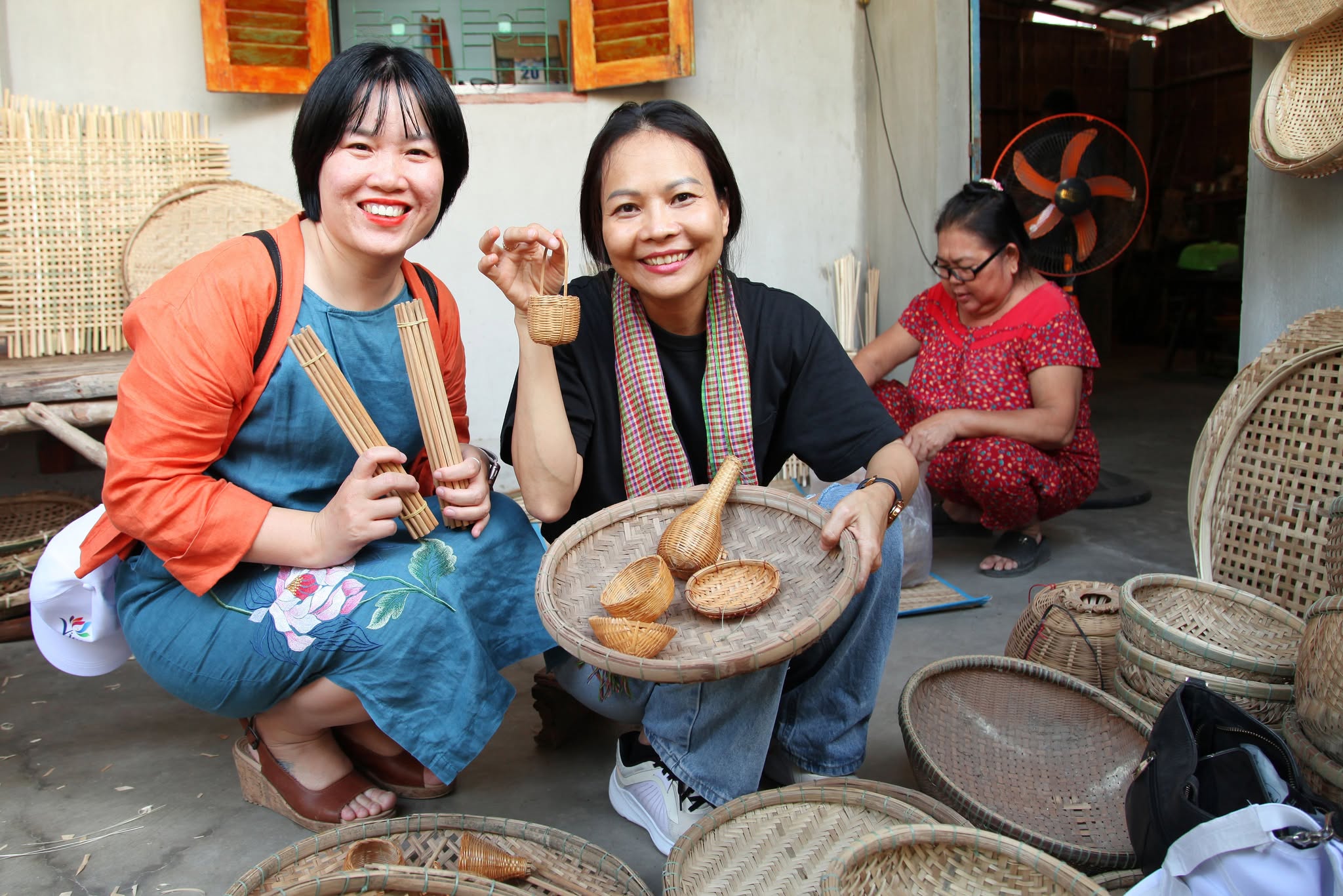 Trải nghiệm làng nghề đan đát với nghệ nhân Thạch Hưng - Ảnh: TITC