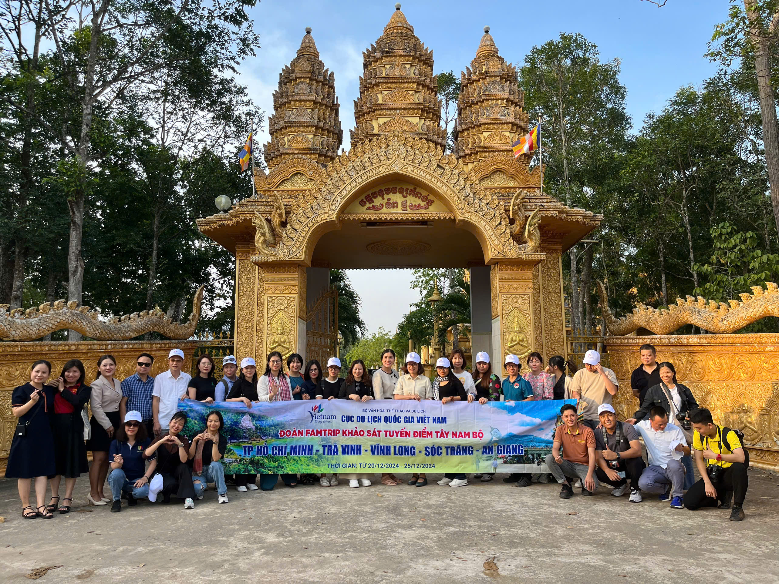 Đoàn Famtrip Cục Du lịch Quốc gia Việt Nam chụp ảnh lưu niệm ở Chùa Âng - Ảnh: TITC