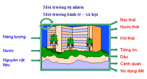 "Môi trường bao gồm các yếu tố tự nhiên và yếu tố vật chất nhân tạo quan hệ mật thiết với nhau, bao quanh con người, có ảnh hưởng đến đời sống, sản xuất, sự tồn tại, phát triển của con người và thiên nhiên" (Điều 1, Luật BVMT Việt Nam, 1994). Như vậy khái niệm về môi trường, hiểu một cách rộng, còn bao gồm cả tài nguyên trong quá trình phát triển của xã hội.